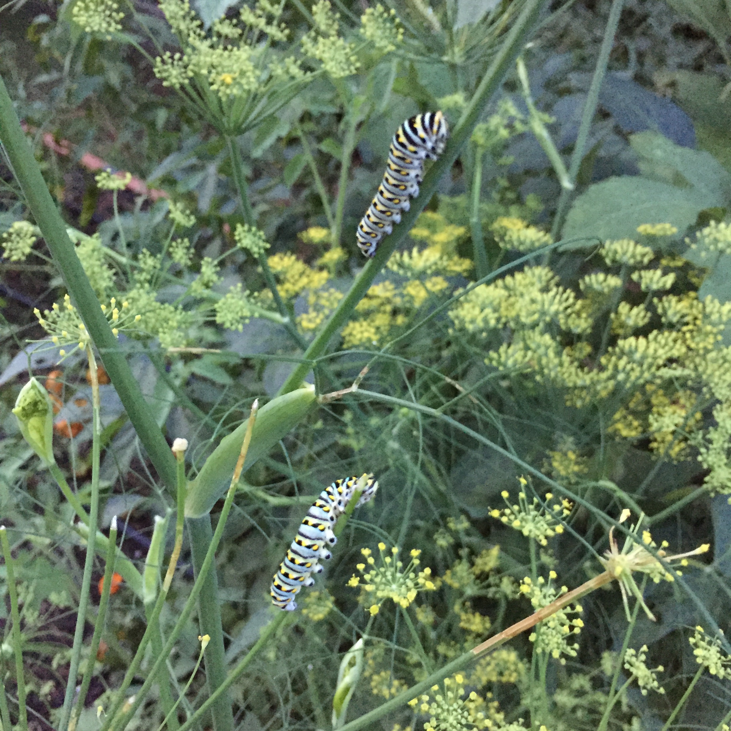 Black swallowtails We left a few of our fennels in the ground to flower and have been rewarded by a couple hungry waves of black swallowtail caterpillars now that go from barely visible to full grown in just a few days of feasting on the fennel and parsley. Share:Tweet Click to share on Telegram (Opens in new window) Telegram Click to share on WhatsApp (Opens in new window) WhatsApp Click to email a link to a friend (Opens in new window) Email Like Loading...